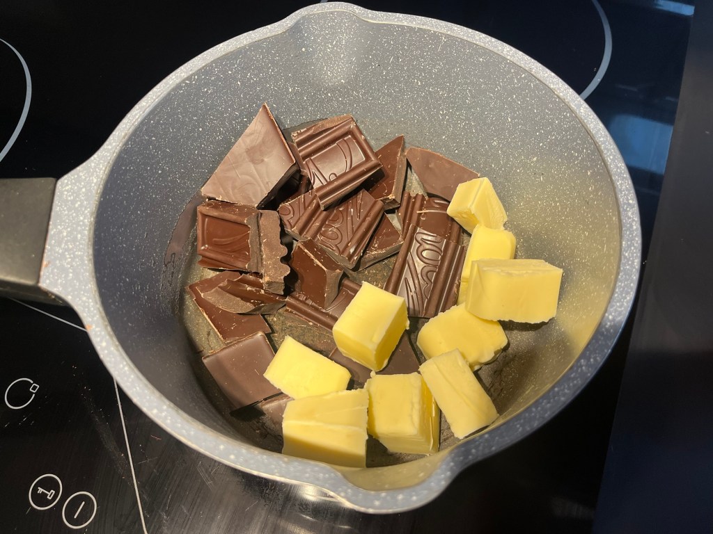 Commence par faire fondre le beurre et le chocolat sur feu doux (attention à ne pas brûler le chocolat ou à le faire monter trop en température : il doit fondre mais rester tiÚde).