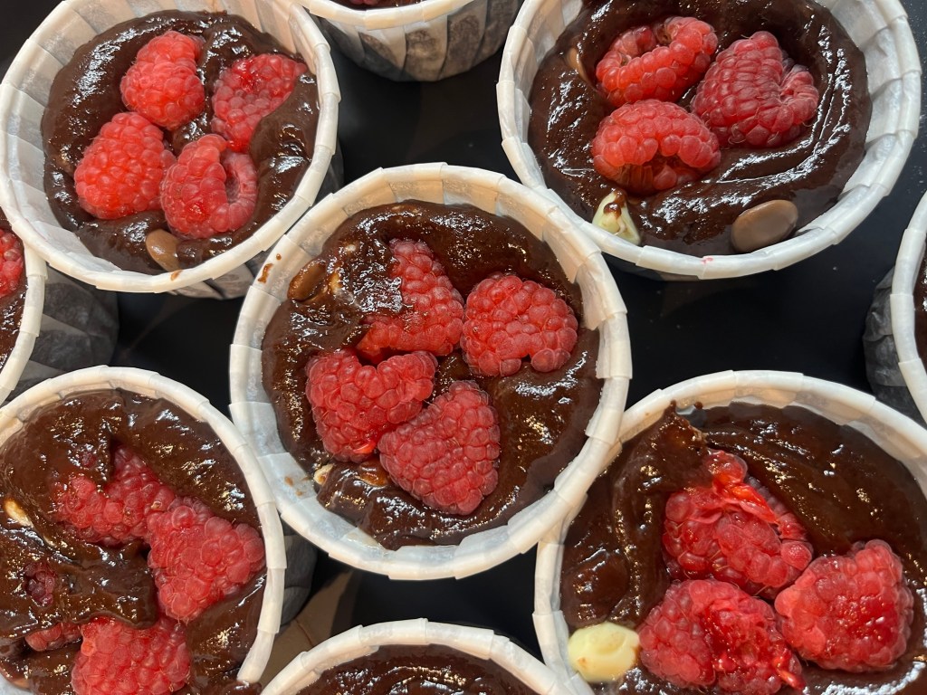 Une fois ton choix fait (moule ou caissettes), ajoute les framboises.