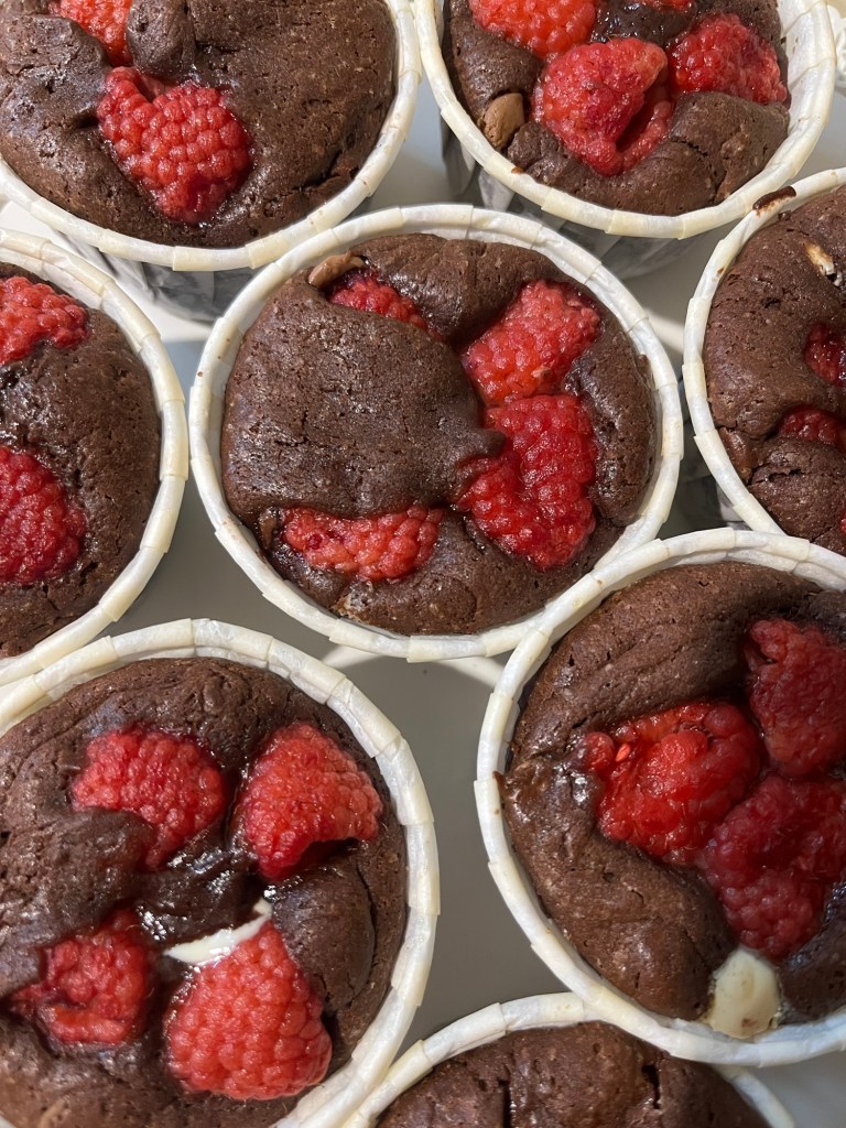 Si tu utilises des framboises surgelées, je te conseille de les mélanger directement à la préparation avant de la verser dans le moule ou les caissettes.